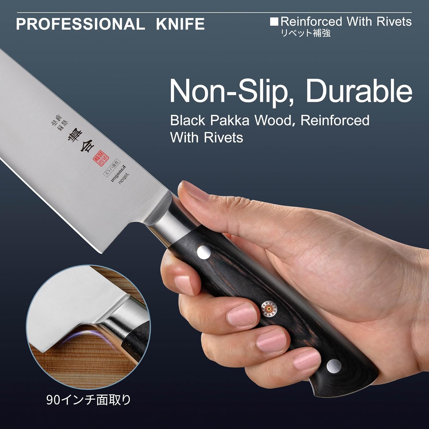 TheKanngou Classic Seriesis thoughtfully crafted for home cooks who want reliable performance, easy handling, and lasting sharpness in the kitchen. Made from high-qualityJapanese AUS-8 stainless steel & Full-Tang black pakkawood handle, these knives offer excellent edge retention, rust resistance, and effortless cutting—perfect for everyday tasks like chopping vegetables, slicing meat, or preparing family meals.